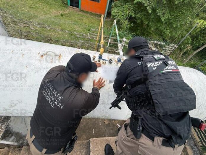 Durante el cateo en Acayucan, la FGR detalló que aparte del tanque de almacenamiento fijo, con tres mil litros de gas L.P., aseguró un dispensador de gas con un tramo de manguera acoplada a una llave de paso y un inmueble, en el que presuntamente se vendía ilícitamente el petrolífero.