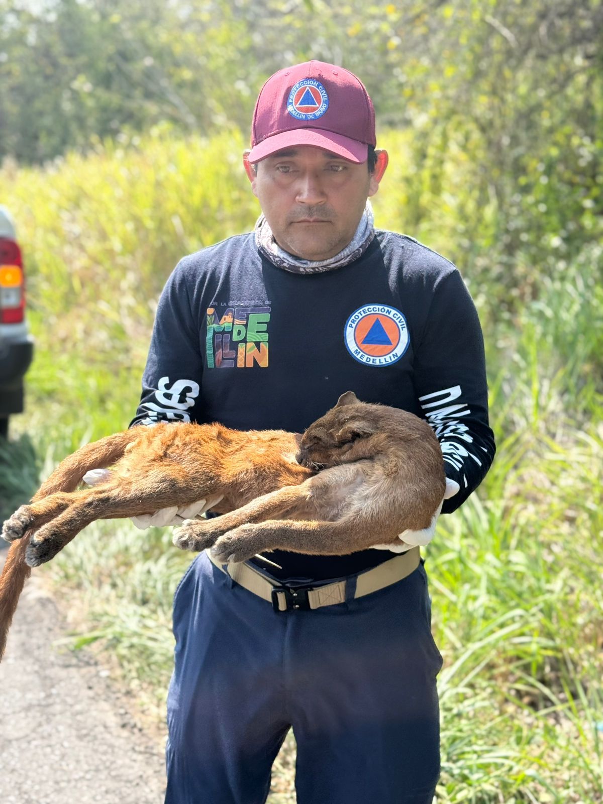 Medellín de Bravo, Veracruz, 07 de abril de 2026.-Por instrucciones del alcalde Ing. Samuel Acosta Martínez, autoridades municipales llevaron a cabo este martes el levantamiento y disposición final de un ejemplar de felino silvestre, conocido comúnmente como “onza”, el cual fue localizado sin vida tras haber sido presuntamente arrollado sobre la carretera El Tejar–Mozambique, a la altura de la localidad de Rancho del Padre.