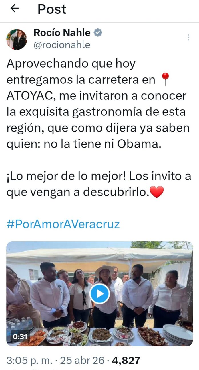 Veracruz.- Una lluvia de reproches arrancó en redes sociales Rocío Nahle tras intentar presumir la gastronomía de la región de Atoyac, ubicado al centro del estado de Veracruz.