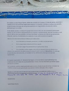 “Los enfermeros presionan su mollera cada vez que la revisan, no la alimentan de manera regular, le sacan sangre constantemente sin dar explicaciones y ya fue sometida a varias cirugías, entre ellas la colocación de una válvula y una operación de cadera. En una de esas cirugías el resultado no fue satisfactorio y tuvo que volver a ser operada”, denunció la madre.