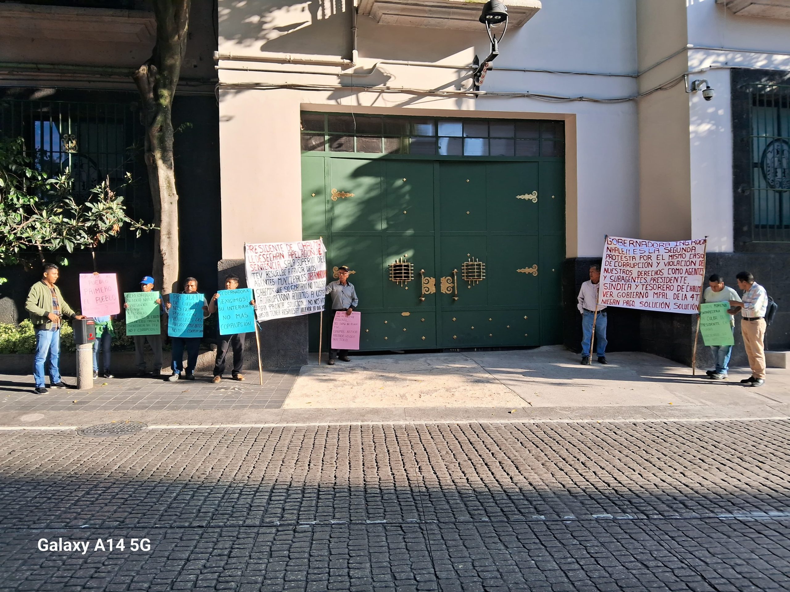 Irineo Pérez Melo.- Agentes y subagentes municipales de Chalma, Veracruz, de nueva cuenta se manifestaron en la Plaza Sebastián Lerdo de Tejada, frente a palacio de gobierno, para denunciar al alcalde Eder Humberto Flores Ortega de no acatar la sentencia emitida por el Tribunal Estatal Electoral de Veracruz de pagar los adeudos salariales que mantienen desde el 2022 al 2025.