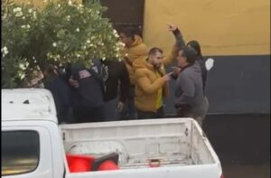 Golpes, manoteos, acompañados del robo del celular del reportero ocurrieron en segundos, momentos que fueron captados por otros comerciantes de la misma plaza «San Jerónimo», al ver la cobarde agresión del grupo de sujetos.