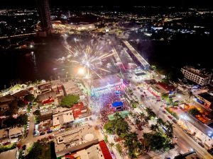 La noche continuó con un espectáculo de pirotecnia que iluminó el cielo, acompañado por la participación de la banda musical del CBTIS 79.