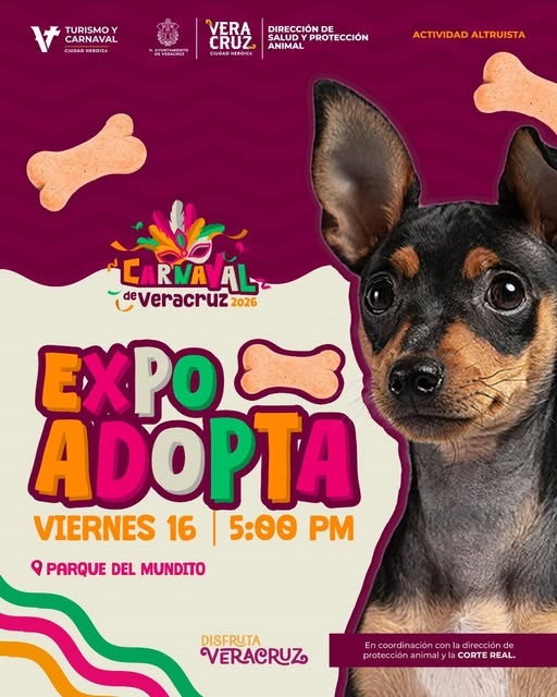 Veracruz, Ver., 15 de enero del 2026.- Como parte de las actividades del preludio del Carnaval de Veracruz 2026, la “Fiesta de Todos” y que en su edición número 102 tiene el objetivo de retomar las actividades altruistas; mañana se realizará la Expo Adopta en donde los integrantes de la Corte Real efectuarán una pasarela acompañados de los gatitos y perritos que tiene bajo se resguardo el ayuntamiento de Veracruz.