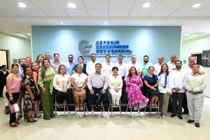 En este encuentro matutino fue recibida por Edi Alberto Martínez Tejeda, presidente del CCE, y acompañada por Belgio Amaya Rizo; Luis Antonio Exsome Zapata; y Gustavo Barrosa Barrón.