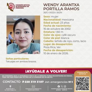 Por su parte, la Comisión Estatal de Búsqueda (CEB) emitió sólo la ficha de Wendy, de 23 años de edad.