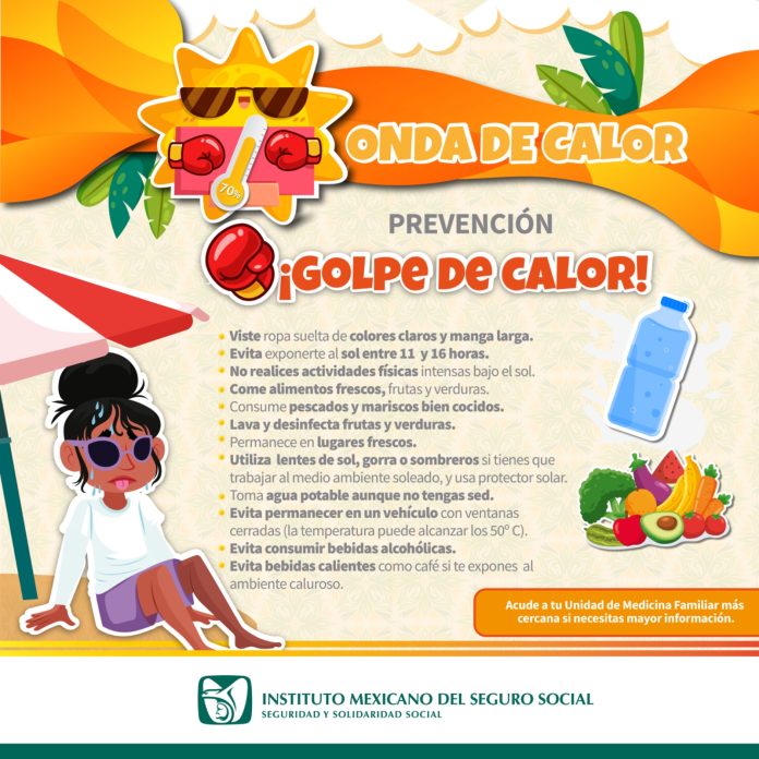 El doctor Leyva Jiménez indicó que en caso de presentar algún síntoma como: mareo, enrojecimiento y sequedad en la piel, dolor de cabeza, aceleración del ritmo cardiaco; así como signos de confusión o pérdida de conocimiento, vómitos y falta de aire o problemas para respirar, es necesario acudir de manera inmediata a la UMF de adscripción.