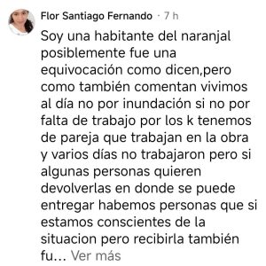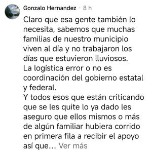 También hay otras personas que señalan que la zona es muy pobre y que en tiempo de lluvias no pueden salir a trabajar por lo que las despensas les permitirán comer un par de días.
