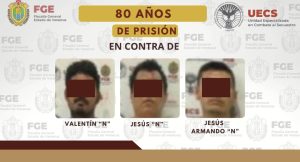 También de 80 años de prisión en contra de Valentín “N”, Jesús “N” y Jesús Armando “N”, como responsables del delito de secuestro agravado, cometido en agravio de una víctima con identidad resguardada.