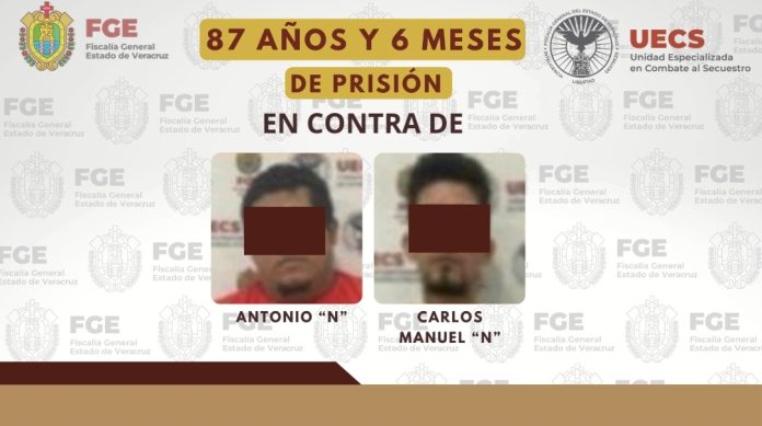 Coatzacoalcos, Ver., 21 de noviembre 2025.-La Unidad Especializada en Combate al Secuestro y la Extorsión logró sentencia condenatoria de 87 años y 6 meses de prisión en contra de Antonio “N” y Carlos Manuel “N”.