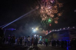 Durante la celebración, las y los asistentes disfrutaron de un espectáculo de fuegos artificiales y la transmisión del conteo regresivo en pantallas, marcando el cierre del 2025 y la llegada del nuevo año, en una atmósfera de unión familiar.