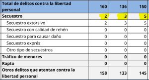El secuestro es otro rubro que tiene un aumento sustancial, al anotarse 5 casos frente a 2 que hubo en enero de este 2025.