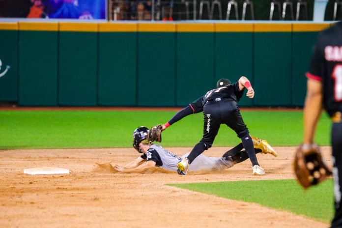 Boca del Río, Ver., 03 julio de 2025. Un ataque de cuatro carreras en el segundo rollo, le abrió la puerta a Piratas de Campeche para vencer por pizarra 7-6 a El Águila de Veracruz y los filibusteros se quedaron con la serie en el Beto Ávila.