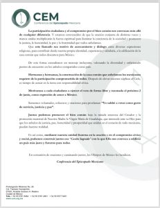 * Clama la CEM por un proceso en paz y transparencia, por un México mejor