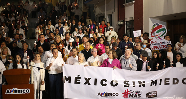 Acompañado por su esposa, la señora Mariana Yorio y con velas encendidas en memoria de las víctimas de la inseguridad, el candidato exigió un alto a la violencia cotidiana y creciente, a los feminicidios, a los secuestros, a los asaltos, a las extorsiones.